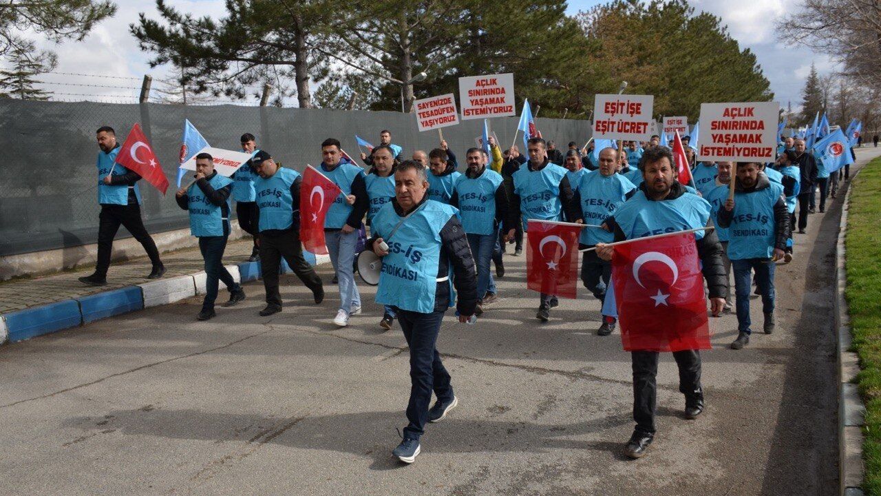 TES-İŞ Sendikası Afşin Şubesi öncülüğünde düzenlenen eylemde, işçiler yaklaşık 3 kilometrelik yürüyüşün ardından santral nizamiye kapısında basın açıklaması gerçekleştirdi.